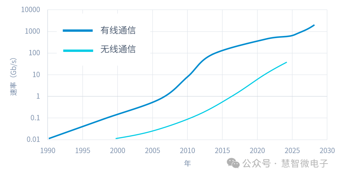在过去几十年的通信技术发展中,移动通信迅猛崛起,也将学术界与产业界的目光紧紧聚焦在了手机上。作为移动通信的杰出代表,手机中广泛应用的蜂窝网络、Wi-Fi、蓝牙、NFC、UWB以及卫星通信等技术,都是依托射频实现的“无线”通信。这一现象不仅彰显了无线通信技术的强大能力,也加强了其在通信领域的代表性地位。慧智微起初深耕于手机应用的射频芯片,所以在日常交流中自然而然地聚焦于“无线”通信技术。然而,近年来,随着路由器、GPON厂商对慧智微Wi-Fi6/Wi-Fi7 FEM产品的广泛采用,我们逐渐感受到,通信领域并非无线通信的单一舞台,有线通信同样无可替代。路由器、GPON厂商的产品核心功能在于将“有线”的光信号或电信号转换为“无线”的射频信号。在与这些客户专家及工程师的深入交流中,我们也逐渐感受到有线通信与无线通信思考角度的不同。