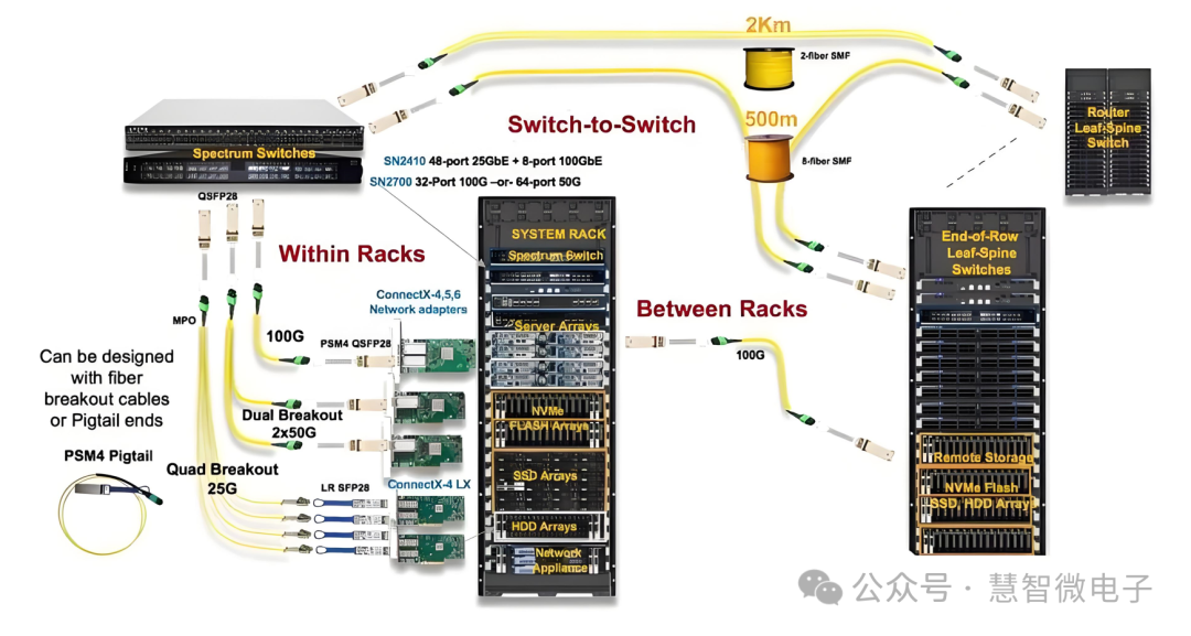 图:数据中心内部用于数据的传输和交换的有线光纤网络AI技术的兴起与爆发,为有线通信中的光纤技术带来了新的发展契机与挑战。光纤技术持续创新与发展,以满足AI技术对数据传输的更高标准。同时,光纤技术也为AI技术的蓬勃发展提供了坚实保障。AI应用与有线光通信相辅相成,共同驱动着整个社会的数字化转型与智能化升级。无线通信的发展