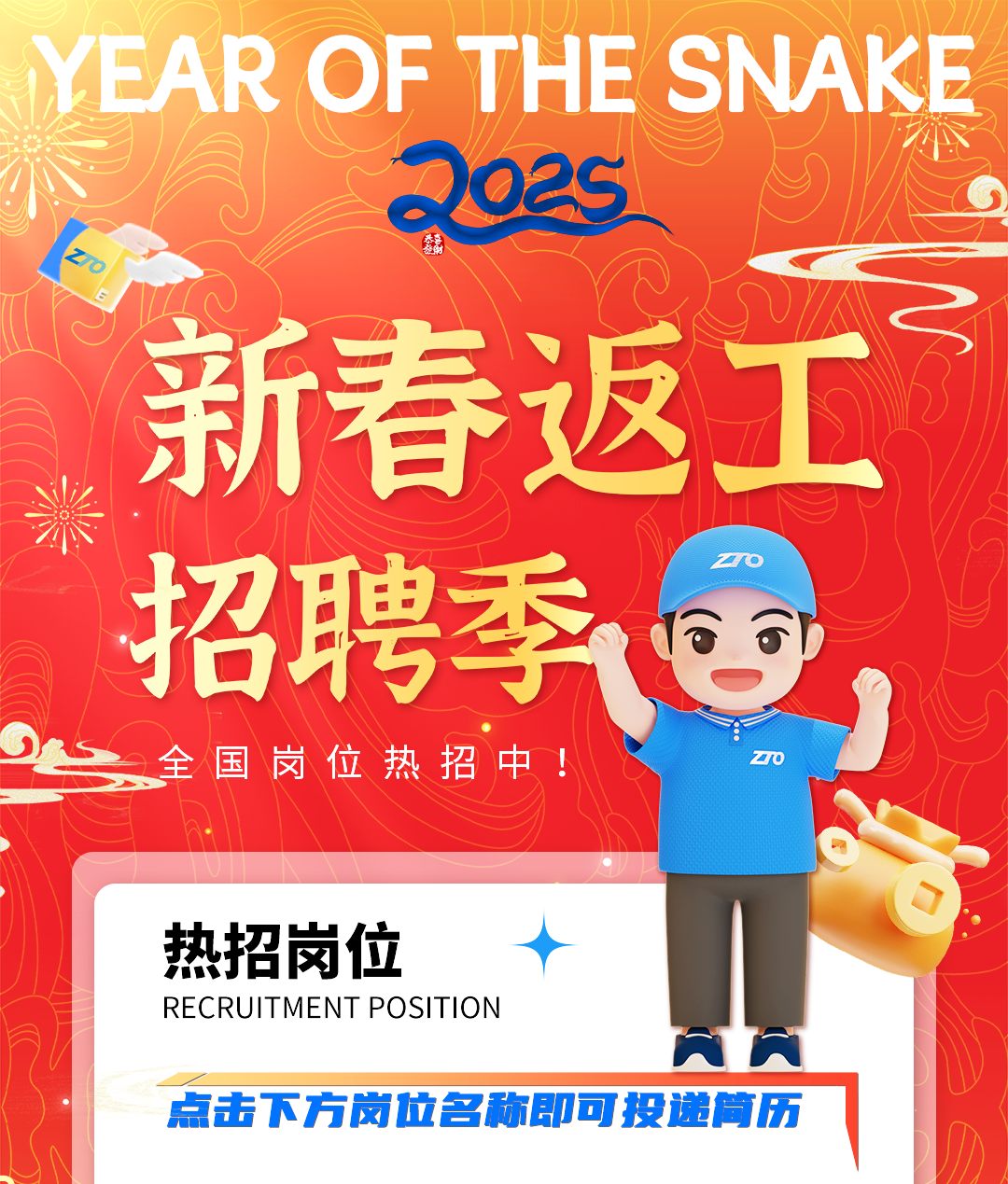 新年新气象!中通快递新春返工招聘季,全国有岗 快来报名!