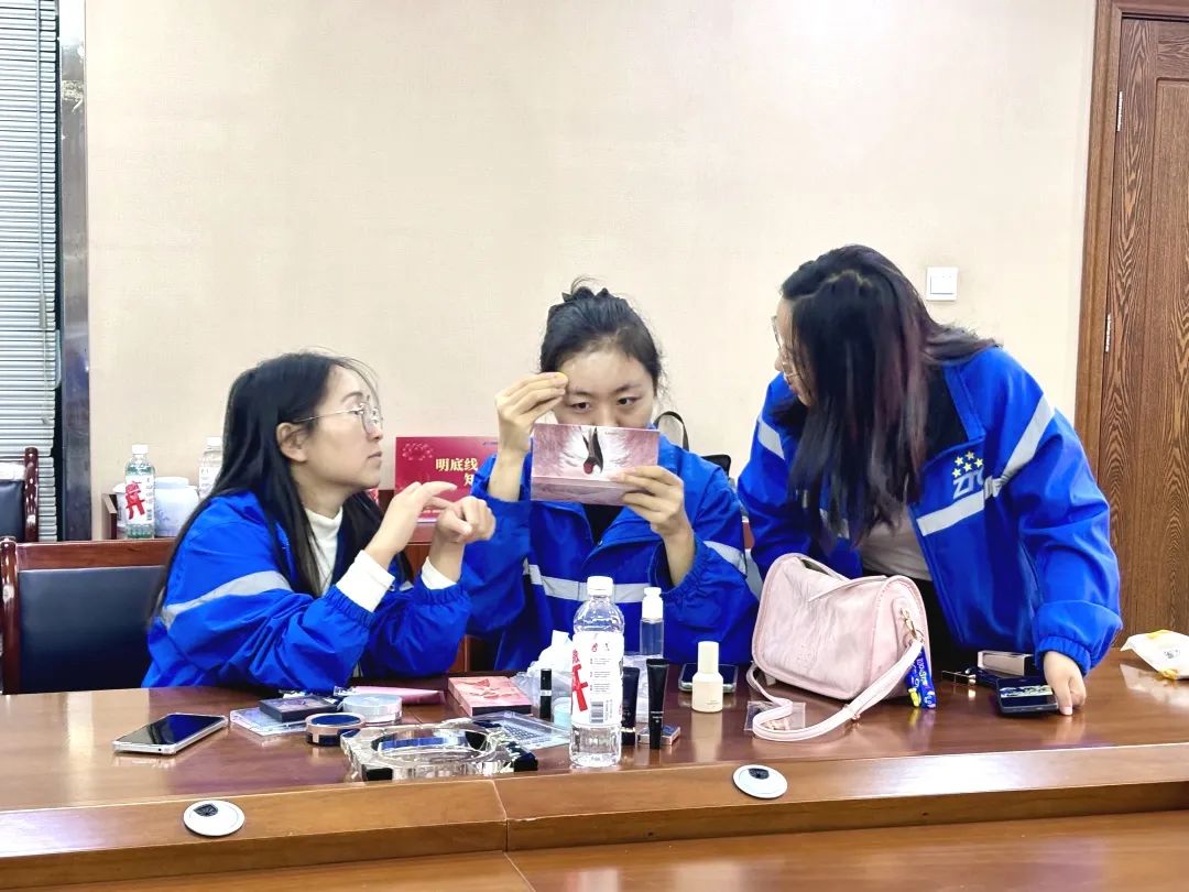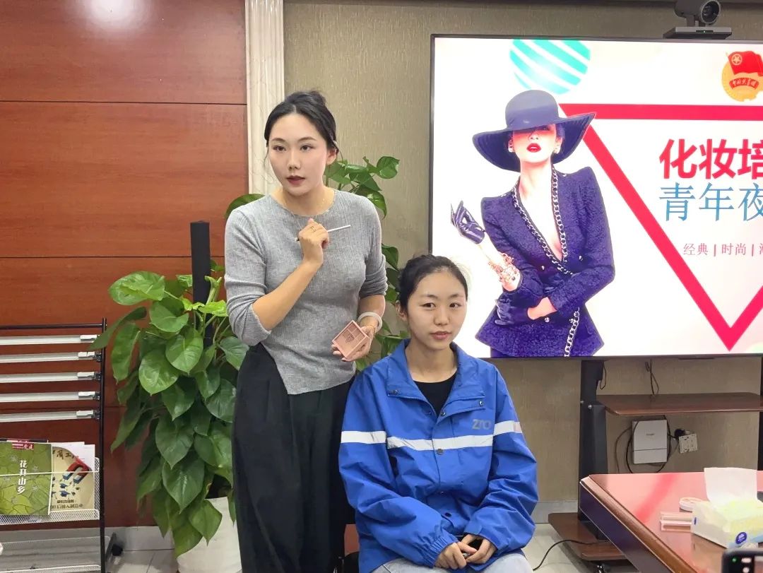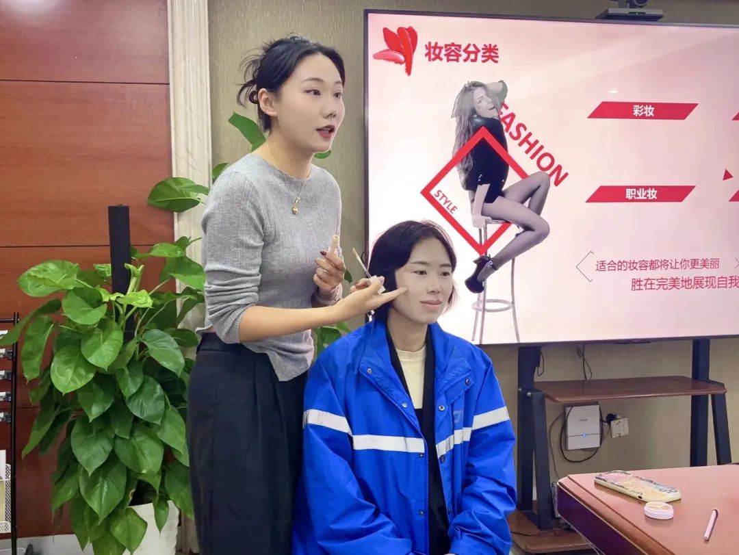 美妆课程上,老师带领大家辨别妆容类型、学习化妆步骤、掌握“早八快速妆”。现场进行实操教学,步骤清晰明了。在实际演练的过程中,更种草化妆好物,增长化妆技能。