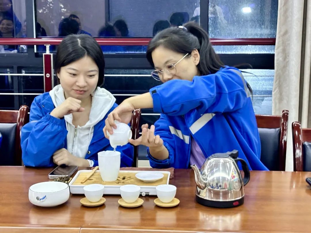 摆出茶具,放入茶叶,朵朵茶叶在蒸腾热水中逐渐舒展,整个教室茶香弥漫。茶艺课上,学员们辨茶叶品类、学白茶文化、品白茶贡眉。在老师的带领下,大家交流心得、对比品茶。通过学习,不仅能掌握泡茶技艺,提升品茶审美,更能深入了解茶文化,感受传统茶艺的独特魅力。
