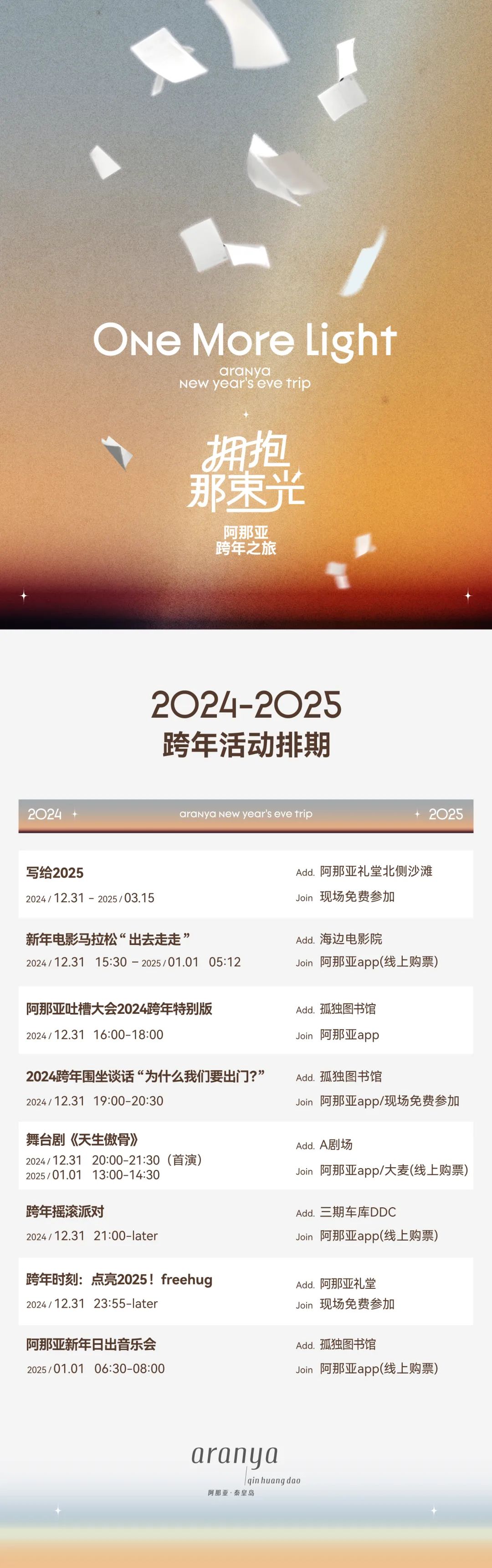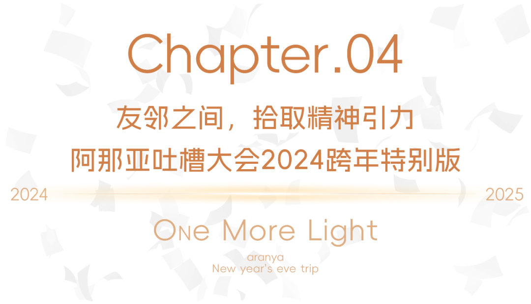 2024年即将走到尽头,岁末是结束,亦是开始。新旧交汇的时刻,我们相聚在阿那亚,踏上一场追光之旅。