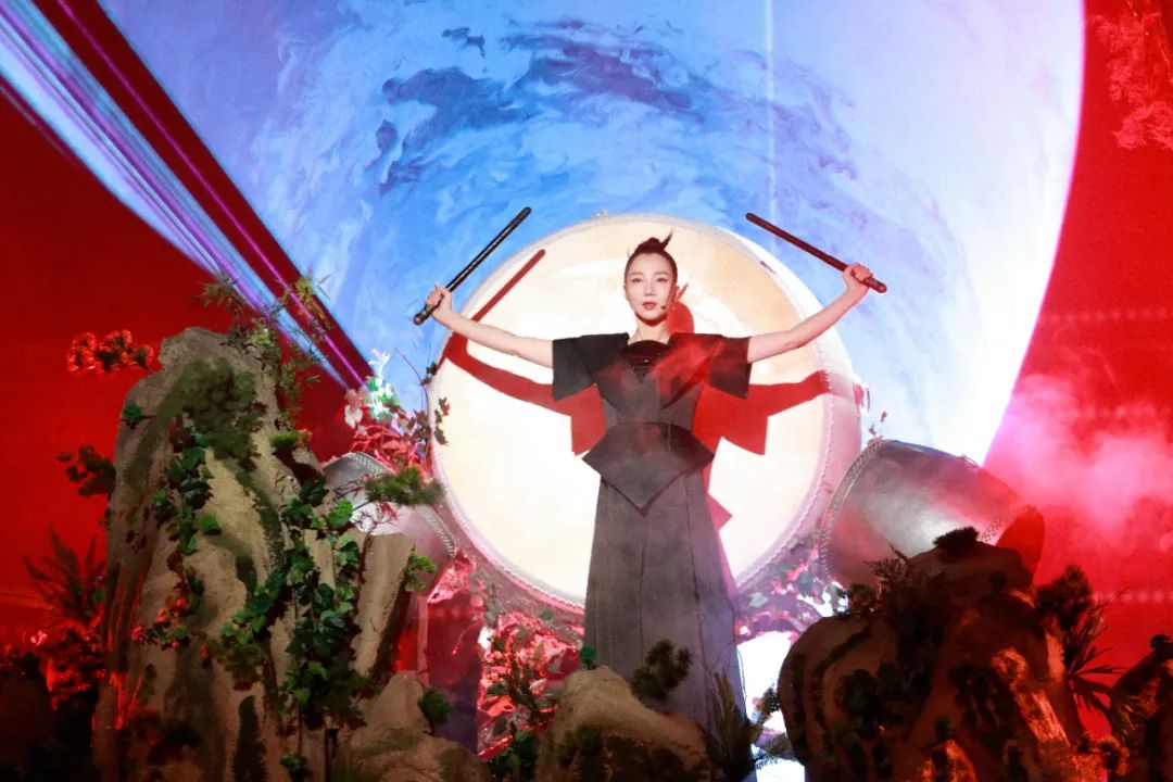 临近零点,灯光闪烁,空气中弥漫着期待与兴奋。阿朵亲自化身鼓手,身姿矫健,飒爽擂鼓,击声隆隆,贯通天地,带着无限的张力与生命力,响彻无垠辽阔的海岸。传统非遗与先锋艺术碰撞,瞬间唤起所有现实感官,仿佛可以闻到泥土腥涩,摸到雪水润凉,超乎听觉直抵内心。
