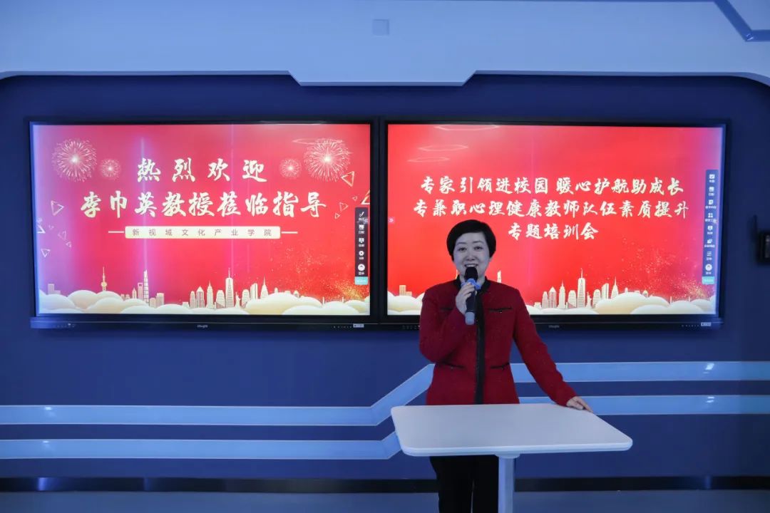 为进一步促进学校心理健康教育工作,加强心理育人队伍专业化建设,提升心理健康专业知识和技能,大学生心理健康教育与咨询中心(以下简称“中心”)在新视域文化产业学院的支持下,举办了专兼职心理健康教师队伍素质提升专题培训会。特邀黑龙江大学心理健康教育中心主任、黑龙江省高校学生心理健康教育专家指导委员会秘书长李巾英教授来学校授课。人文教育学院院长王莫楠、学工处处长孙婷、校团委副书记贾留阳、心理中心主任王晓亭、专兼职心理健康教育骨干教师及心理委员60余人参加培训。