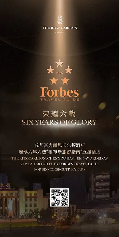 成都富力丽思卡尔顿酒店连续六年被《福布斯旅游指南》评为五星酒店,并拥有2025年成都《米其林指南》入选餐厅:丽轩中餐厅。