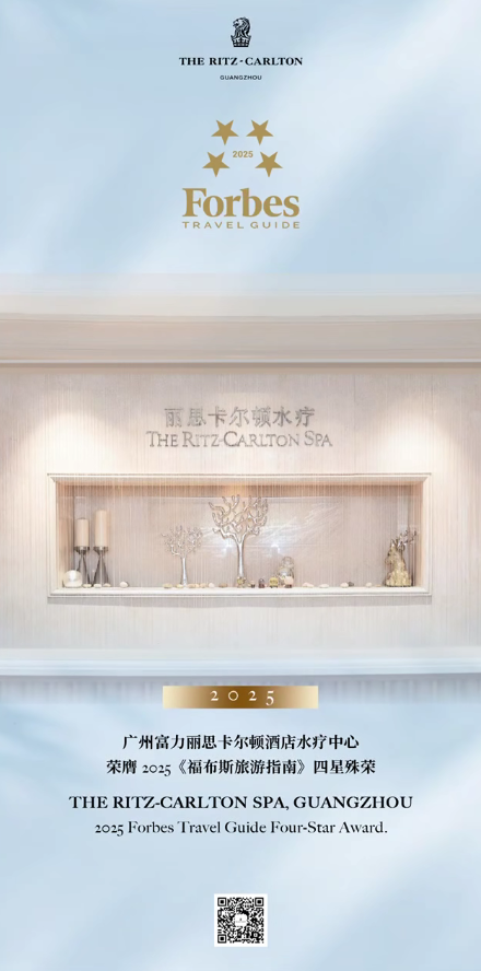 与此同时,广州富力丽思卡尔顿酒店水疗中心也再次荣膺《福布斯旅游指南》四星嘉许。
