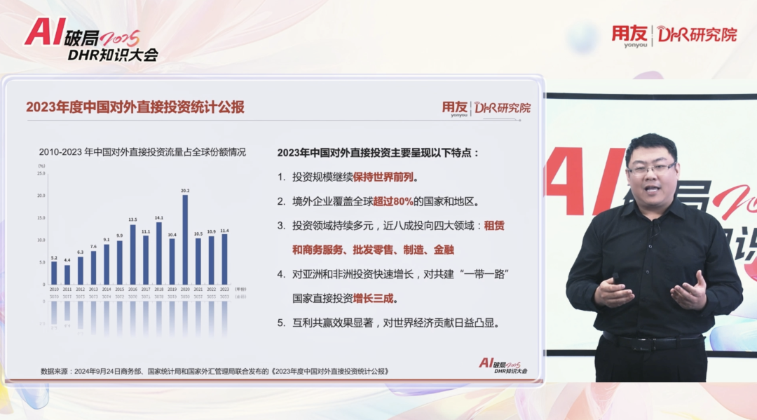 用友全球化解决方案专家饶志博先生围绕中企出海与人力资源数智化展开,在《从本土到全球:解锁人力资源数智化的新征程》 的演讲中,他表示:“随着中国企业海外布局的深化,人力资源数智化转型升级就显得尤为重要,它不仅是提升管理效率、优化员工体验的关键工具,更是应对全球合规挑战的重要保障。在AI的加持下,数智化正以雷霆之势重构全球人才战争的底层逻辑,将助力企业实现全球化的精准布局与高效运营,以人力资源的全球化跃迁推动企业突破物理疆界,织就一张永不停歇的全球价值网络。”
