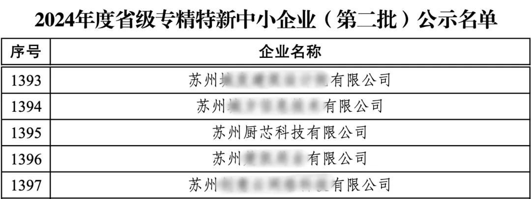 「2024年度江苏省省级专精特新中小企业」公示名单截图