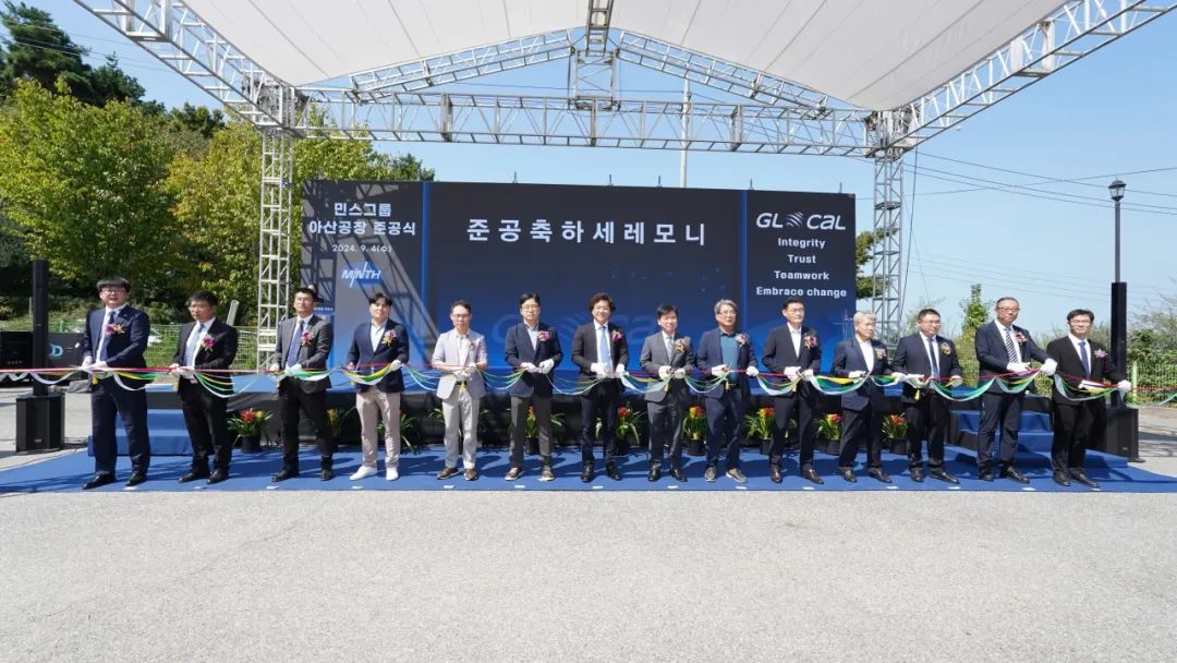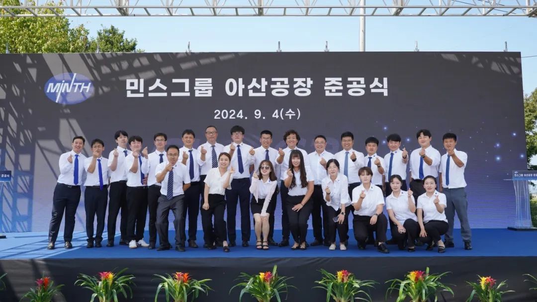 2024년 9월 4일, 민스그룹 한국 아산공장에서 준공식을 성황리에 개최했다. 아산시 조일교 부시장, 충남도의회 오안영 의원, 아산시 투자유치과 정규관 과장 등 정부 대표, 현대그룹 개발팀 김영국 상무, 외장개발팀 송범석 팀장, 외장구매팀 김대희 팀장, 한동산업, Dream Hill, KCC 등 10여 개 협력사 및 민스그룹 임직원과 아산공장 임직원 80여 명이 참석했다.
