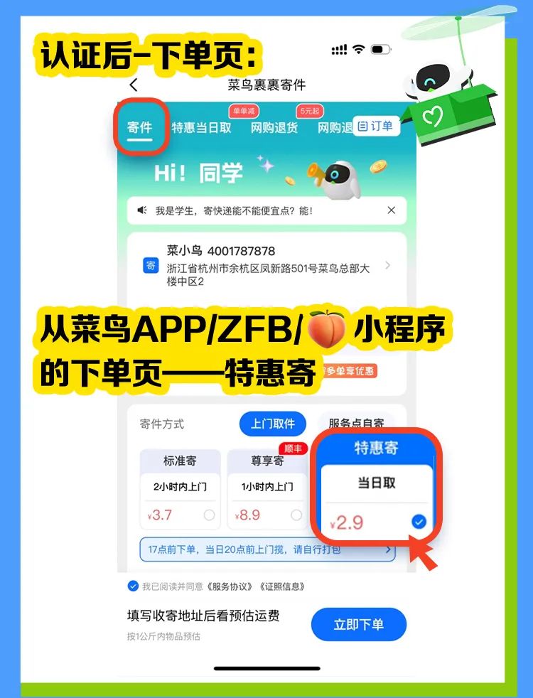 又降价啦!谁还不知道学生便宜寄快递找菜鸟裹裹啊