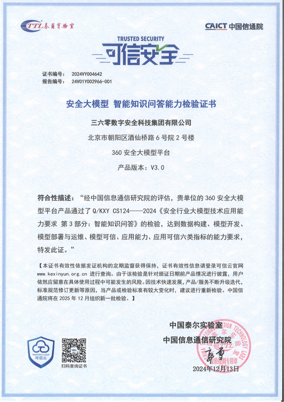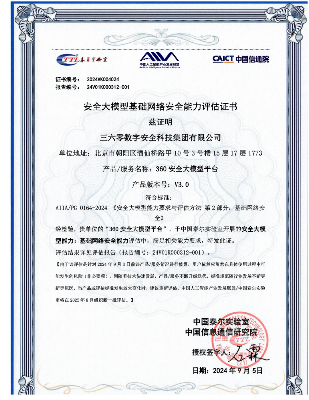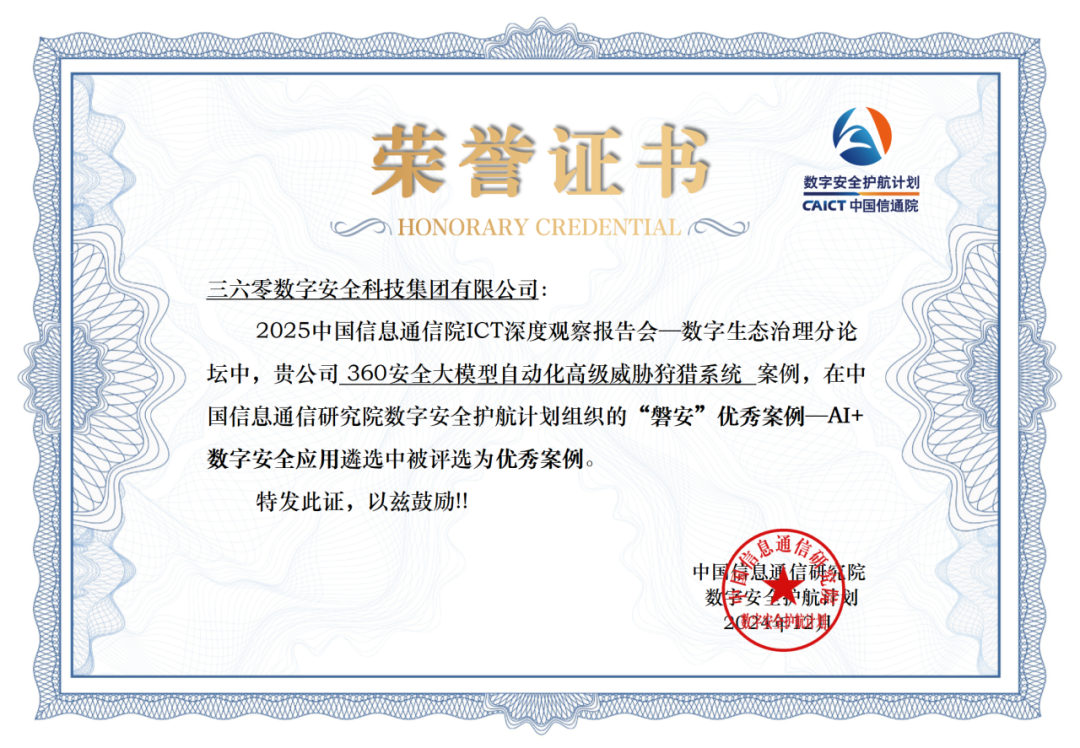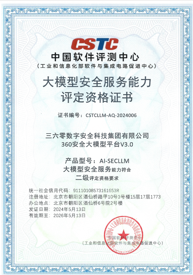 2024年,360安全大模型凭借领先的技术优势和创新能力,在行业内引发广泛关注,斩获国内多项权威认证及奖项。