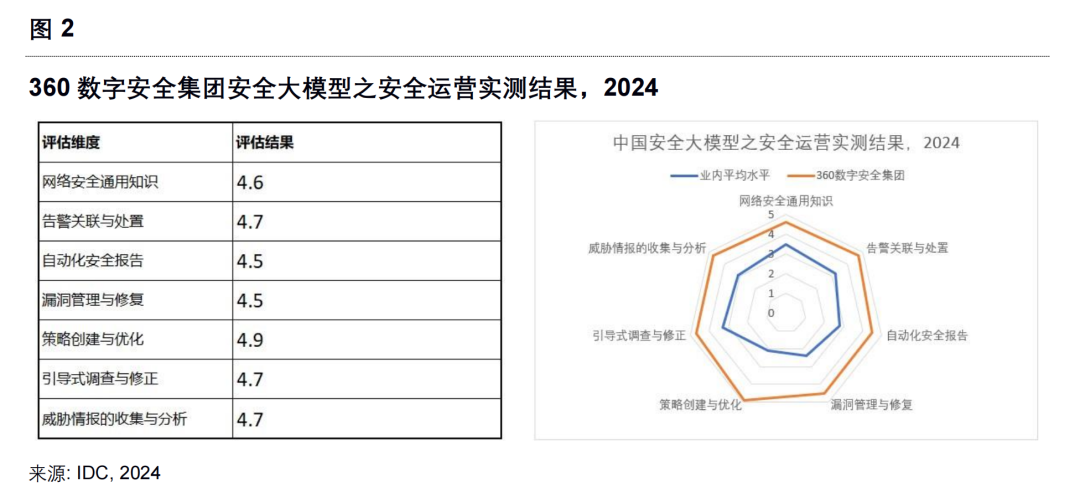 IDC《IDC Technology Assessment:中国安全大模型实测之安全运营,2024》360安全大模型多个维度位居首位,综合能力国内第一