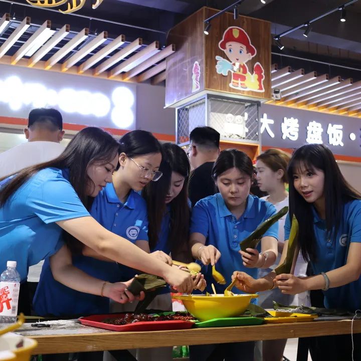 各二级学院各派两支队伍参加比赛,比赛规则是所有参赛队员都要用传统方法包粽子。