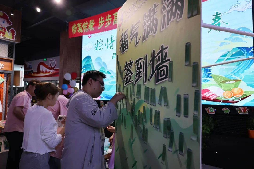 在祈福签到区,师生在祈福卡上虔诚的写下了自己的端午祝福,并挂在祈福墙上,祈福平安、健康、幸福。