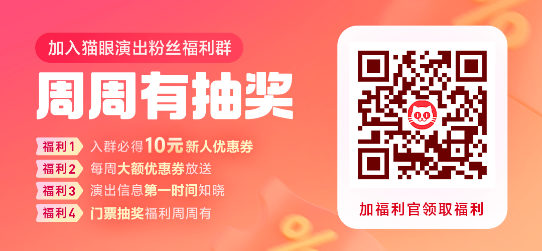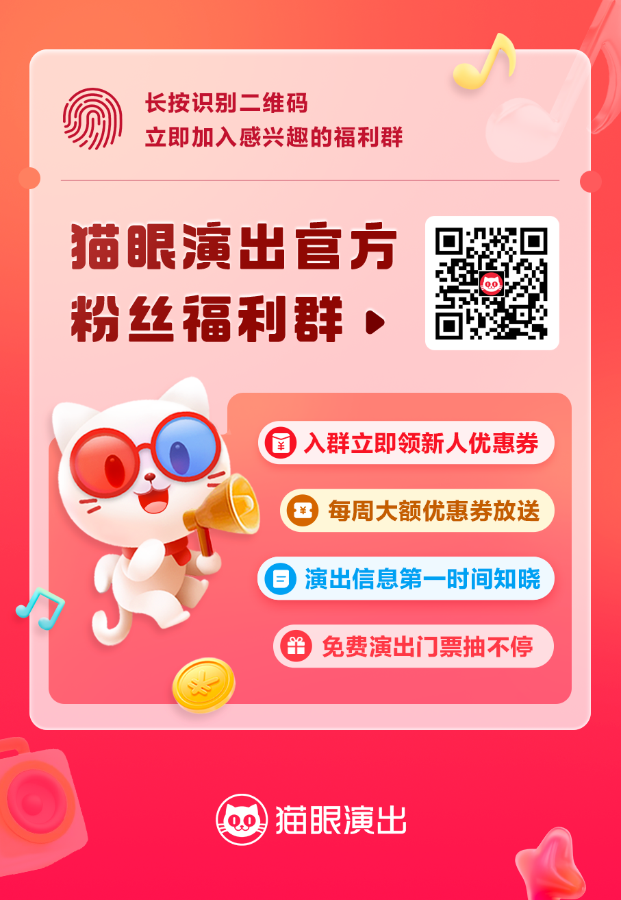 扫码加入猫眼官方社群,还有各类优惠券、演出资讯和门票抽奖等福利掉落!
