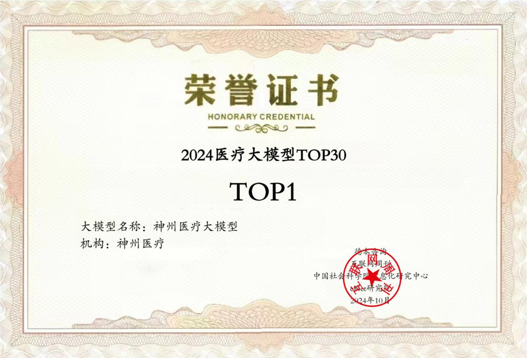 图注:神州医疗大模型在“2024医疗大模型Top30”榜单中位列第一
