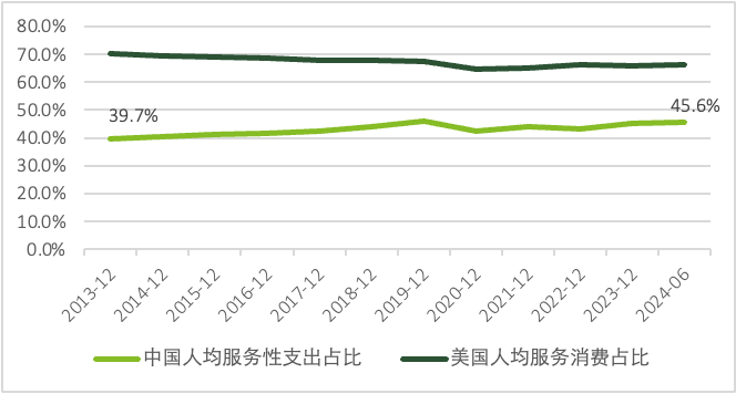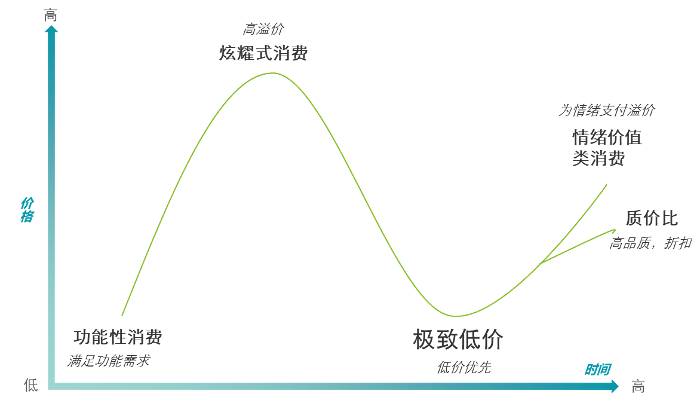 随着人均服务性支出比重逐年扩大,消费结构升级的趋势日趋明显,在此期间消费者的偏好逐渐从追求产品功能性或炫耀式消费转向精神和自我实现的特征。过去三年,主流消费者的消费偏好从初期应激式的极致性价比,逐步过渡到更加理性追求品质和价格优势的“质价比”消费。而2025年将至,当前消费者偏好,特别是年轻一代消费者,逐渐走向情绪价值消费。淘宝天猫数据显示,2024年双十一平台IP周边类娱乐产品成交金额破百亿,同比增超100%。除此之外,为消费者提供“悦己”、“疗愈”和沉浸式体验的消费形式都在持续影响消费者的消费决策,并逐渐渗透到各年龄层级的消费者。