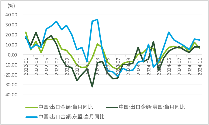 实际上,中国很难单纯依赖外部需求和出口作为替代房地产行业的新增长引擎,或借此来缓解产能过剩的问题。特朗普在第二任期内的关税政策与第一任期不同,可能会对所有与美国有显著贸易顺差的经济体实施高关税,包括那些受益于中国转移供应链和投资的国家,但对中国采取的关税措施将更加严厉。