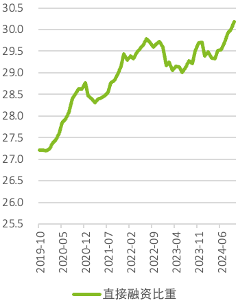 科技金融是五篇大文章之首,将加大力度支持新质生产力发展。监管着力引导金融资本投早、投小、投长期、投硬科技,满足科技型企业不同生命周期阶段的融资需求。这意味着:1)金融体系对轻资产科技型企业的风险容忍度放宽,金融机构更应提升风控能力,加强风控评估模型和数字技术应用,防范风险(2023年3月美国硅谷银行破产即是先例);2)更多金融资源导向轻资产的新质生产力领域,直接融资比重有望持续增长,科创企业上市、科创公司债券、科创票据等都是主要业务领域。而传统重资产抵押物(如房地产等)的信贷高速增长时代成过去,2024年信贷增长一路下行,内需修复仍是2025年的重点,信贷增速较2024年仍会下降。