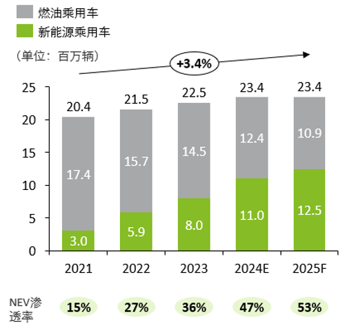 图:中国新能源乘用车渗透率展望(2021-2025)