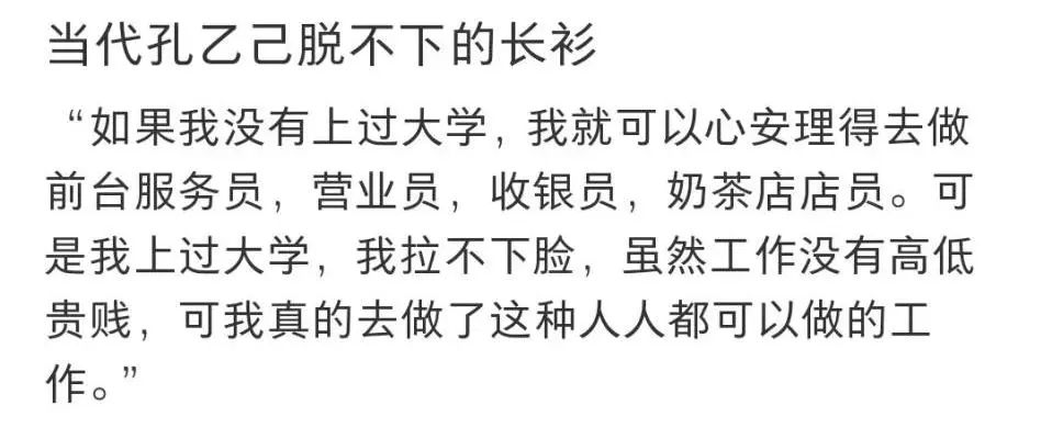 “学历不但是敲门砖,也是我下不来的高台,更是孔乙己脱不下的长衫。”