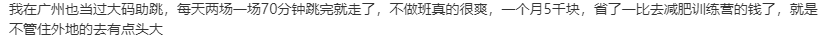 工作内容就是每天跟着直播完整地运动2-4个小时,其他时间完全可以自己安排。