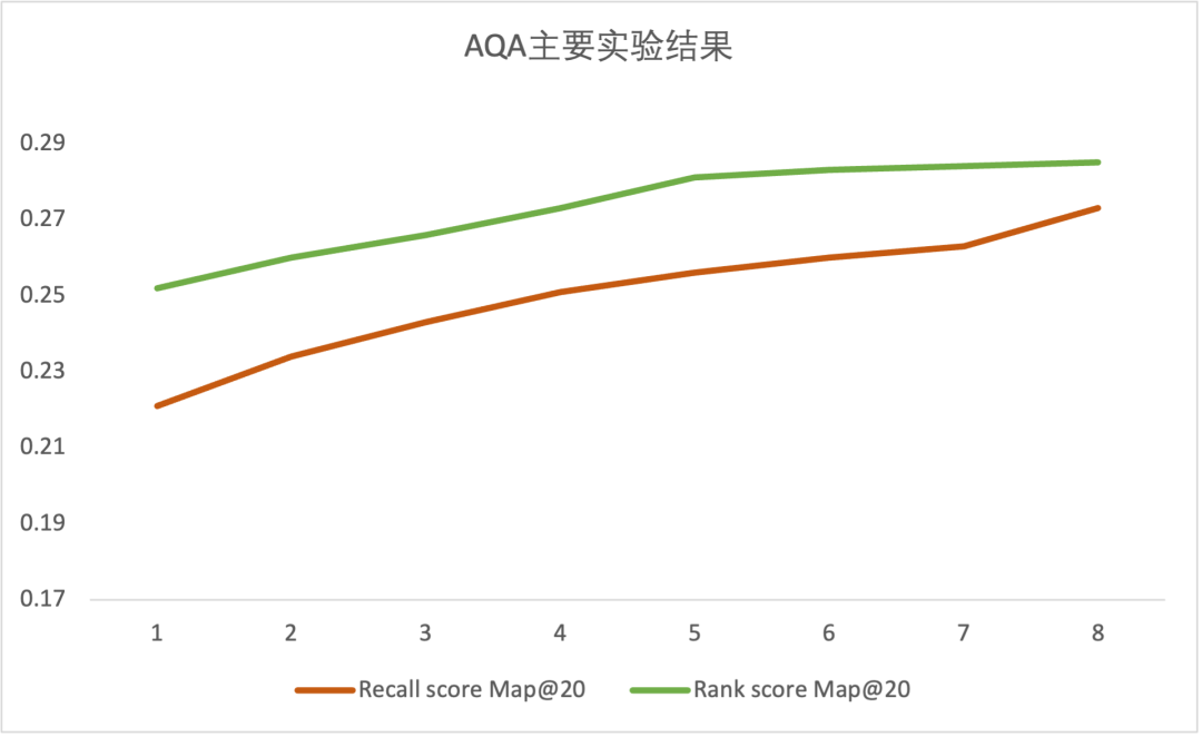 如果未经微调,即使是先进的基于LLM的模型也表现不佳。然而,通过实施我们的微调策略,我们在第一次迭代中观察到初步提升了0.07。如下表所示,MAP@20分数在后续的每次迭代中逐步提高。到第六次迭代时,改进的速度开始减缓。最终,我们共进行了八次迭代,并通过Rank avg融合,最终分数达到了0.301,相对于原生的基座模型获得较大提升。
