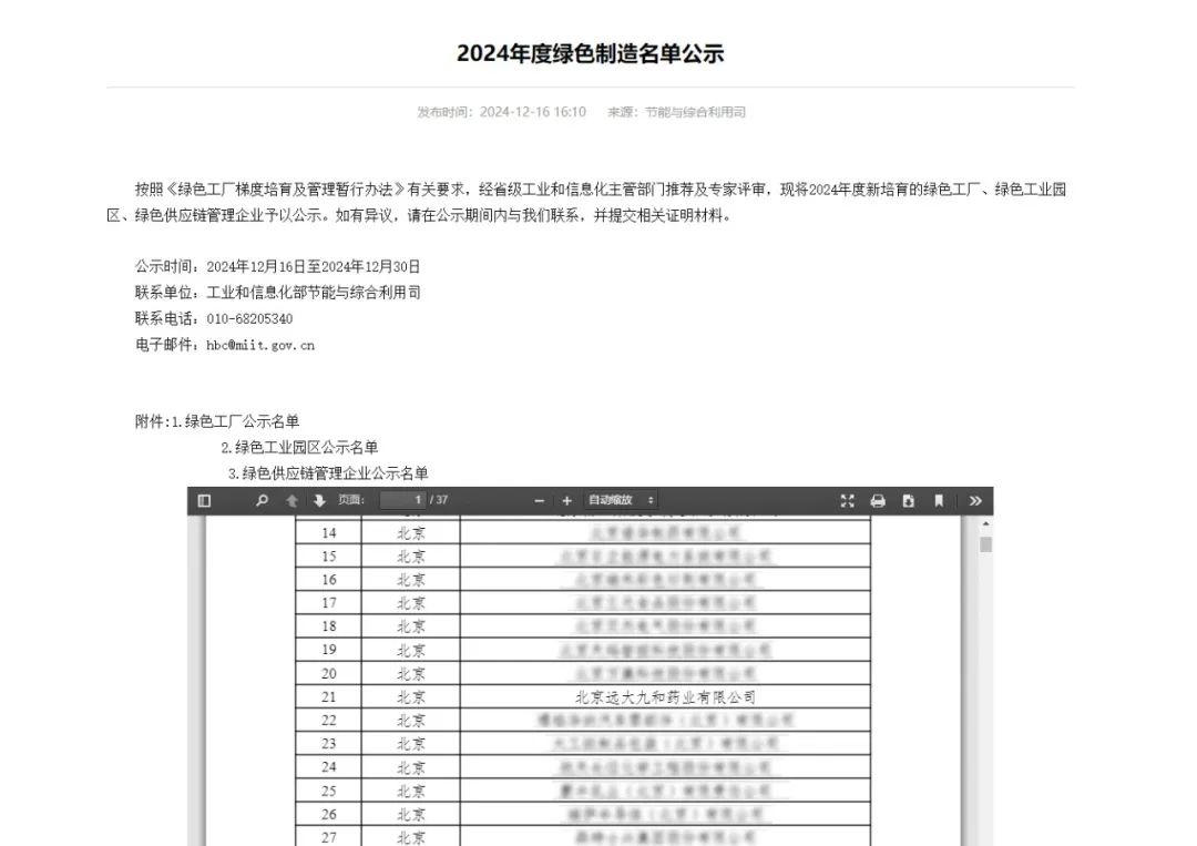 2024年度绿色工厂公示名单,