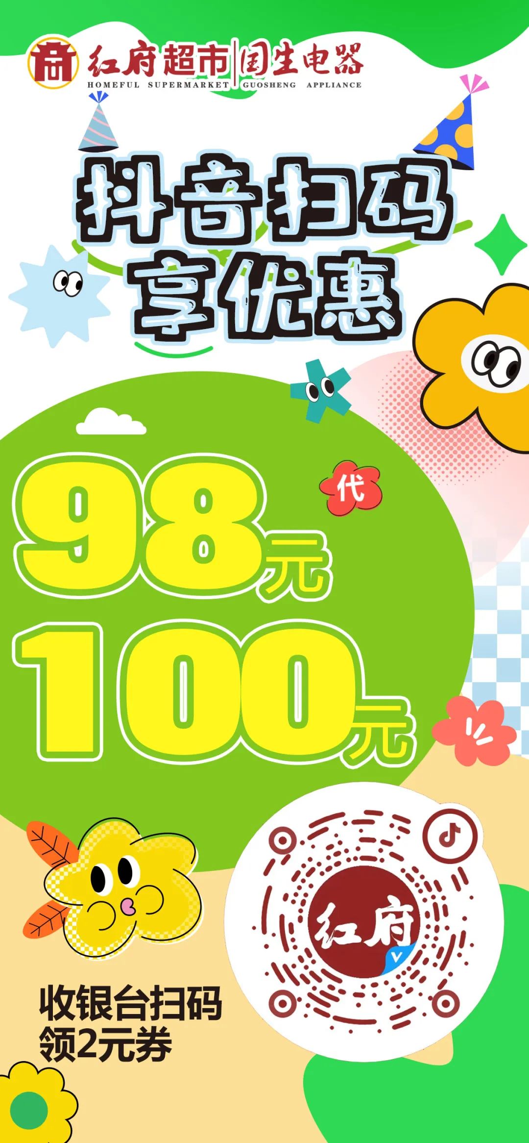 抖音扫码 优惠想不停!扫专属码享96购100元