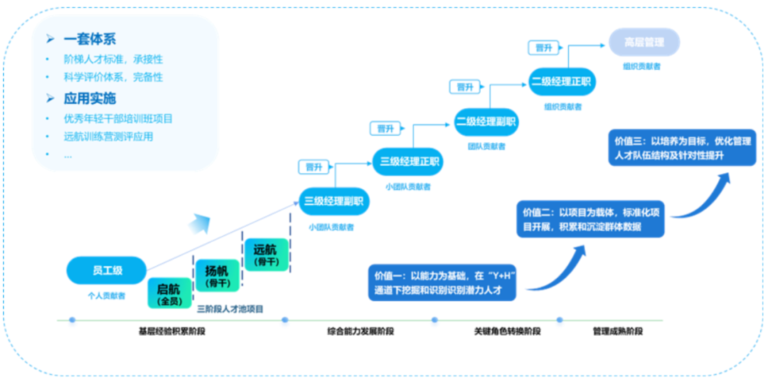 在运营层面,人才管理部门结合企业短、中、长期制定人才需要制定规划,形成相关的各类人才培养项目,内外整合资源运营人才培养项目,为体系化人才发展奠定坚实基础。