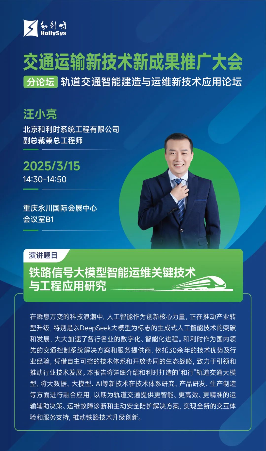 3月15日-3月16日,和利时期待与您携手,共同探讨交通运输领域的前沿技术与未来发展方向,推动交通运输行业的智能化、绿色化、高效化发展!