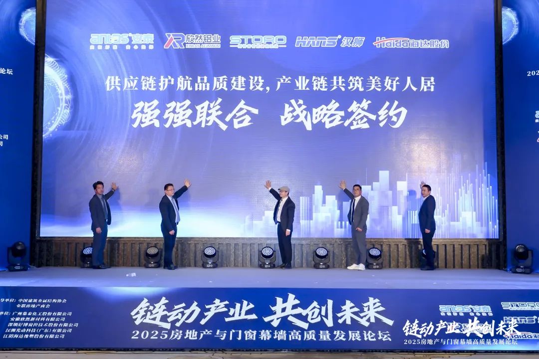 这个仪式,不仅标志着5家企业正式达成战略合作,更意味着房地产与门窗幕墙产业链上下游企业的深度融合迈出了坚实的一步。