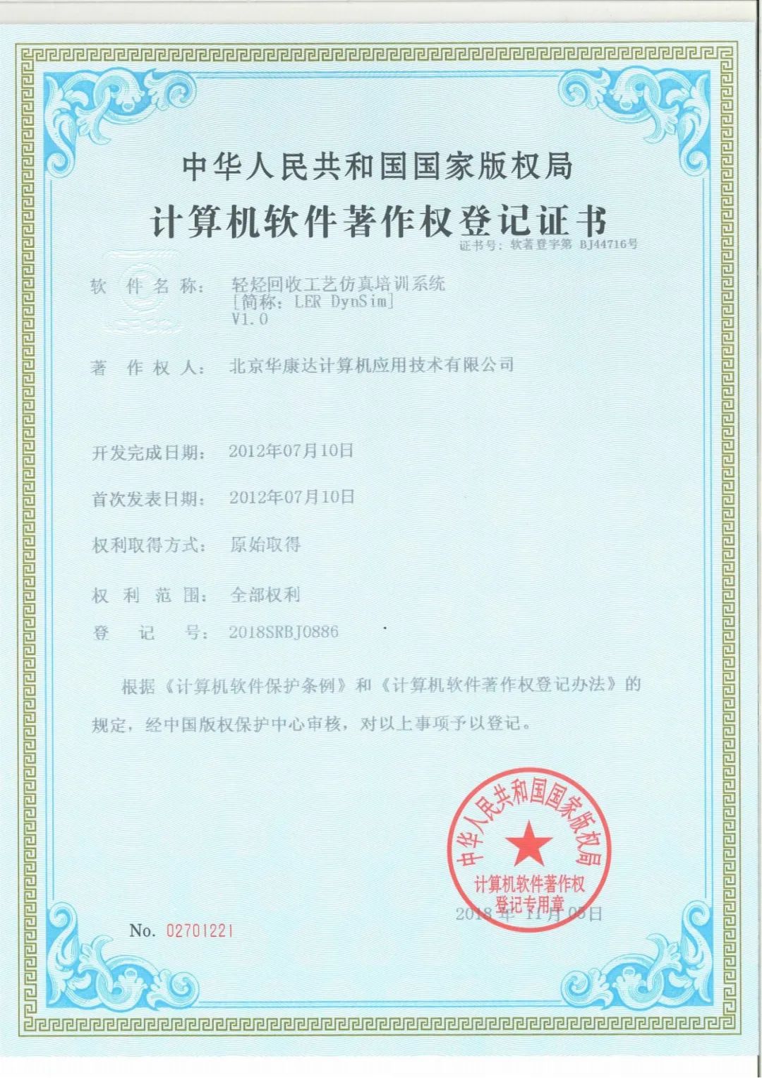 华康达公司拥有丰富的模型经验和众多成熟的自主软件成果(200+软件著作权),本项目中涉及四套装置的工艺仿真均具备自主知识产权: