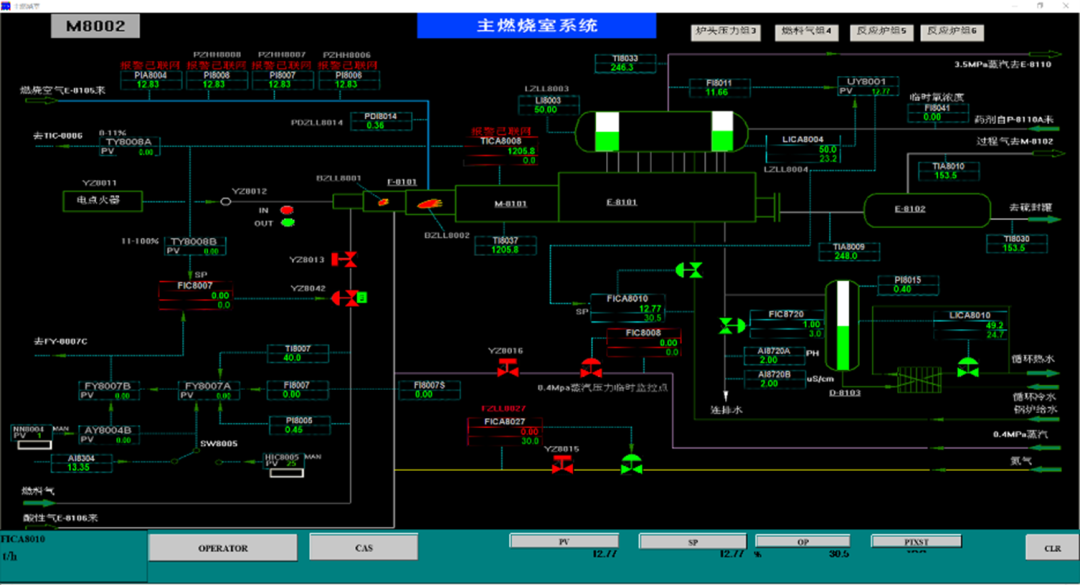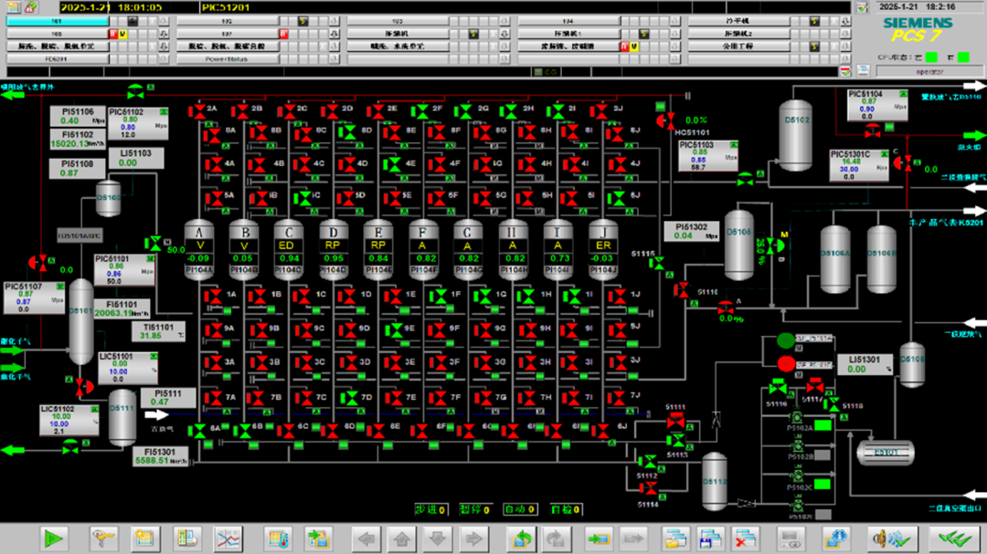 本项目是双方再次合作,该仿真项目启动于2024年7月,采用华康达公司过程工业仿真平台软件GPRES(上海石化拥有该软件的使用权),开发上海石化3#硫磺回收、3#酸性水汽提、2#气体分馏、碳二回收(干气提浓)等四套装置的定制OTS。主要工作包括对四套装置工艺过程的建模、对装置过程控制操作的模拟及对装置生产现场操作的仿真,共计部署通讯点数:20000余点,仿真操作画面170余幅。其中,对装置过程控制的模拟,华康达首次应用自主研发的AI组态智译系统。