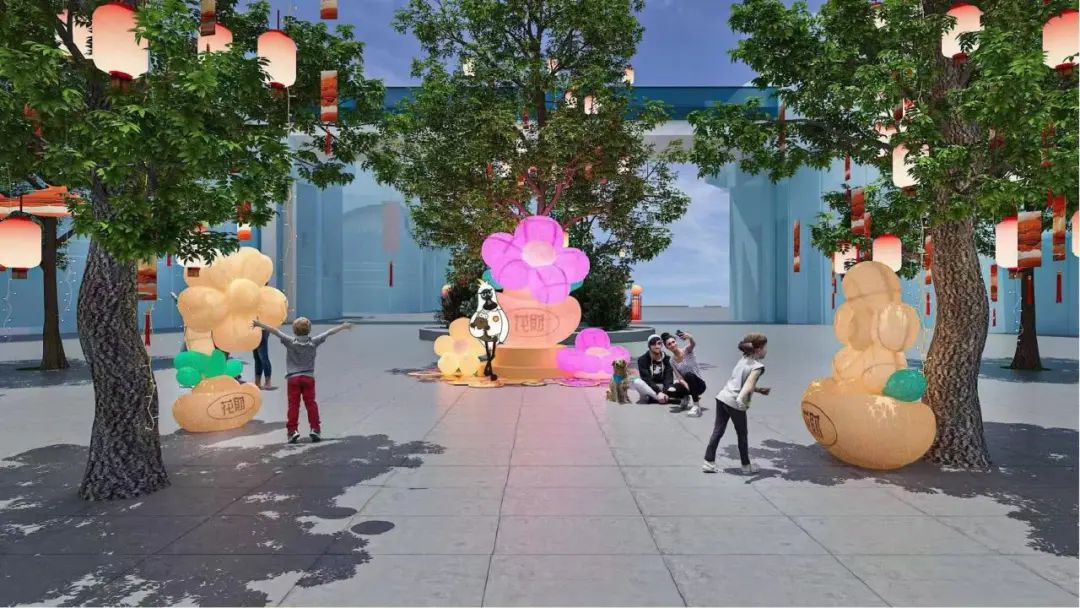团队深挖“逛花市”的仪式感内核,并联合热门IP“花财蛇”一同打造现场美陈装置,通过场景设计唤醒集体记忆。既满足商业展销需求,又赋予花卉以“时间叙事”的张力。