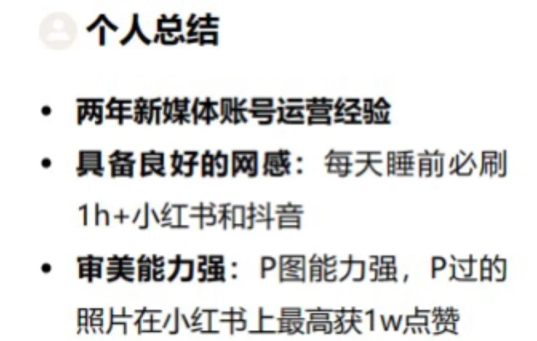 从这些简历不难看出,这届年轻人们追求个性化的心态,而且,TA们真的有在努力,想尽一切办法让自己的简历“活”下来,不被HR无情丢进人才库。抛开上面这些简历中的“花活”,我们发现工作不久的职场新人或应届生在写简历时,确实更容易陷入一些误区,踩中不少“坑”。内容杂乱无章,字体大小不一,有的段落间距过大或过小,还有的甚至将不同颜色的字体混用,自认为重点突出,实则让人看起来眼花缭乱。这还不是最可怕的,最可怕的是Word简历!发送到HR电脑上,有一定概率会显示错误、排版错乱,白白损失一次机会。有些人觉得,把自己所有经历都写上去,总有能打动HR的点。于是,就把小学获得的“三好学生”奖状,到大学期间参加的每一场社团活动,再到实习期间的琐碎日常,统统塞进简历。结果呢?搞了满满3页A4纸。HR每天要筛选上百份简历,哪有时间在3页故事中发掘你身上的“亮点”?与之相对的,是另一个极端,有人能在描述自己经历时,能做到极其笼统概括。比如:在实习/工作经历的地方,只是简单地写上“负责项目相关工作”,具体是承担了什么任务,取得了什么结果,反正就是不写,无法让HR了解自己的真实能力和价值。在简历开头重点部分,就写明自己的求职意向,通过个人简介,展现出与岗位的匹配度。