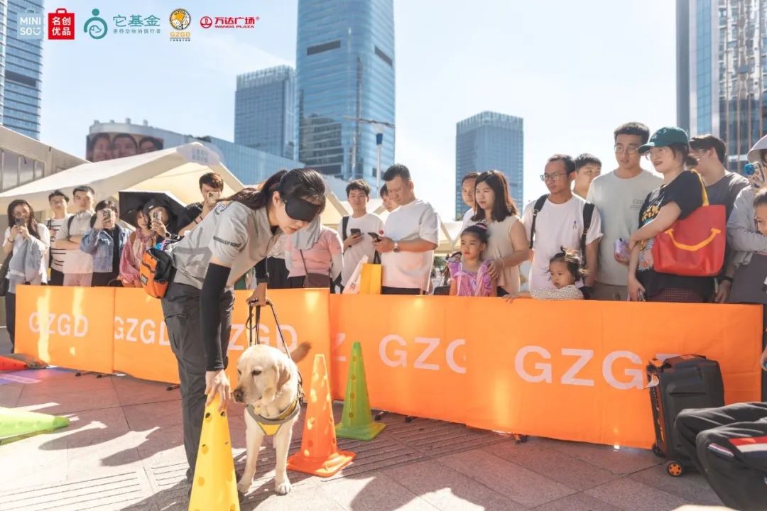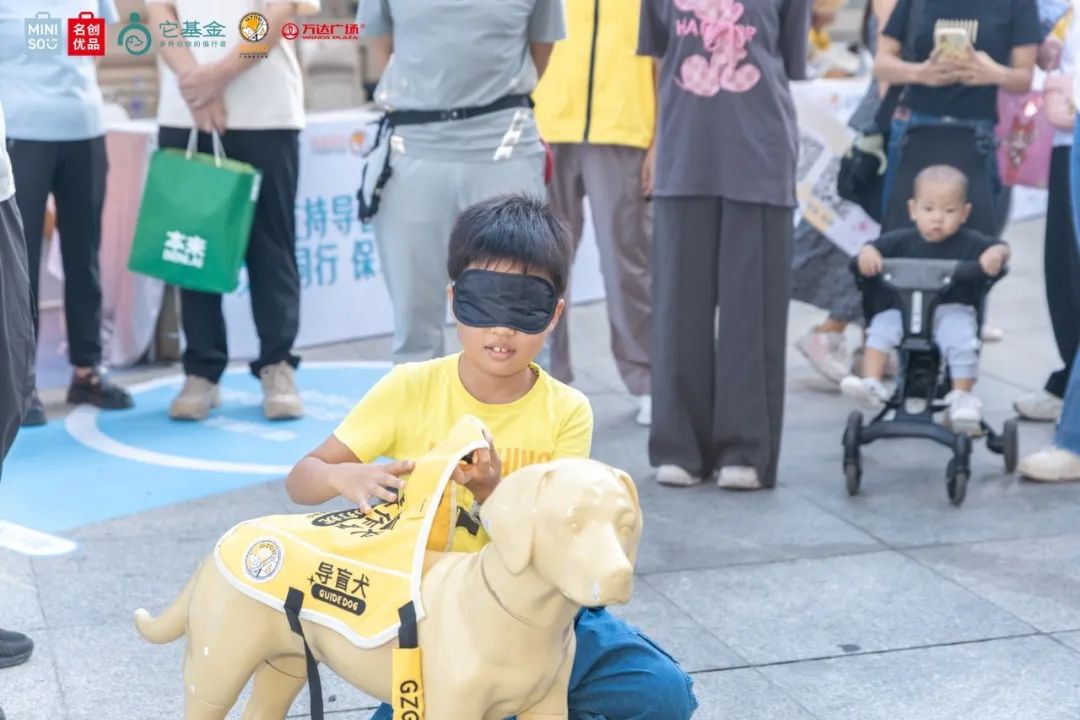 在广州番禺万达广场,你还可以和导盲犬亲密互动,了解它们的训练、工作和生活;甚至可以来一次视障公益体验,亲身体会一下导盲犬对于盲人朋友有多重要!