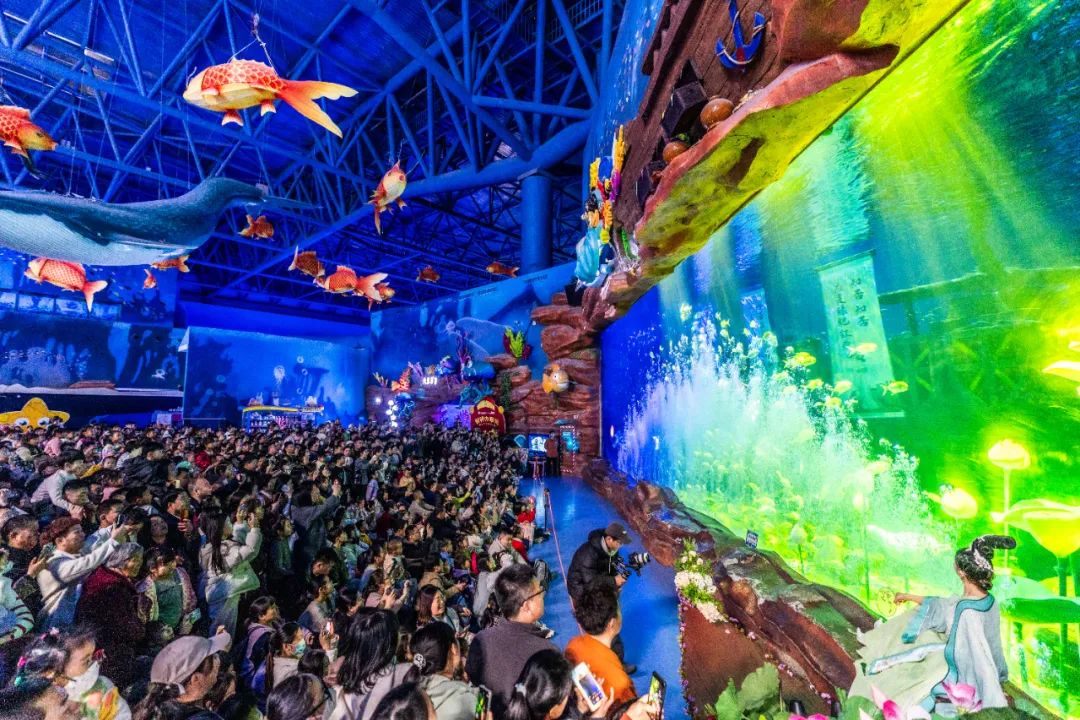 济南融创海世界展演的《荷间锦鲤》,以“泉城锦鲤”为创意灵感,巧妙融入“二安文化”及中国传统诗词元素,将诗词中蕴含的美感内涵与海洋世界的现代灵动相结合。在表演中,“锦鲤”穿梭于荷叶之间,在水中旋转、翻越、变换造型,划出一道道美丽的弧线,好像从李清照的诗词意境中悠然游出,让人宛若置身于“误入藕花深处”的绝美景色之中。融创文旅城精心筹备的这些精彩演出剧目,不仅是对各地域文化的生动展示,更是对戏剧艺术的传承与创新。期待与您在艺术的世界中相遇,共同开启这场难忘的文化之旅!