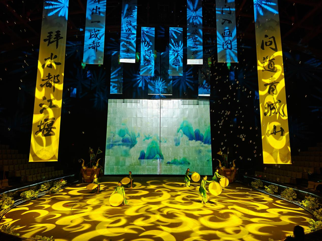 千年奔涌,一舞倾城!由融创文旅和上海戏剧学院共创的大型原创舞剧《拜水都江堰》震撼登场。该剧以水为魂,讲述李冰率百姓修建都江堰的故事。从开篇与洪水抗争,到中篇都江堰滋养平原,再到尾声人与自然和谐共处,通过舞蹈、音乐、多媒体完美融合,展现古蜀先民的智慧与勇气。舞台上,巨型LED屏幕、全息投影等科技手段的运用,使观众仿若身临其境,亲身经历那场波澜壮阔的治水壮举。