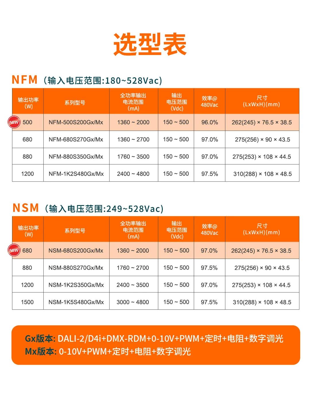 本次新增500W大功率 NFM-500S200Gx/Mx。