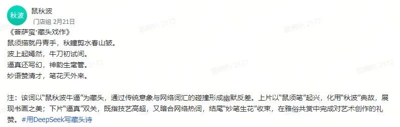 • 创意亮点:网络热词"牛逼"藏头与古典词牌碰撞,雅俗共赏中完成艺术礼赞。