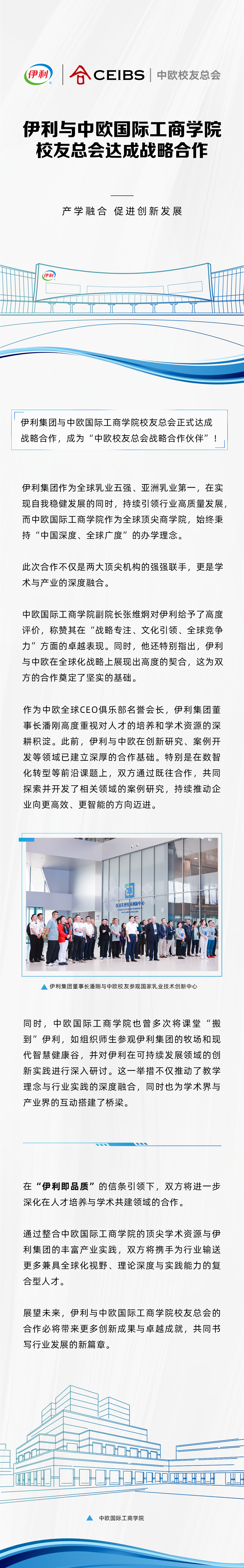 伊利与中欧国际工商学院校友总会达成战略合作,产学融合促进创新发展!