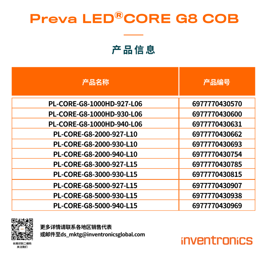 全新Preva LED® CORE G8 COB 光源,将对照明品质和能源效率的高要求完美结合。