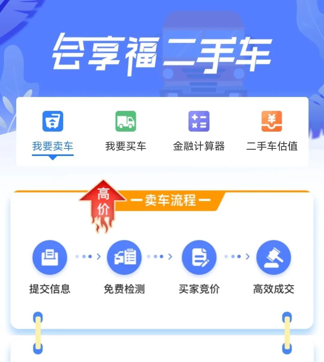 近年来二手商用车的交易量持续增长,二手车买卖成为汽车行业发展的重点领域,但当前市场发展还不完善,存在车况信息不透明、定价标准不统一等现象,使得交易成本高,交易效率低下。为了更好服务福田客户买卖二手车,福田e家支持二手车评估、交易、维修和保养等服务。无论客户想买车、还是想卖车,在福田e家上都能找到答案。在二手车买卖功能中,一键填写买车或者卖车的信息后,会享福能提供严格的检测、评估、服务、售后等交易体系确保交易双方的合法权益。同时,会享福二手车还能为客户提供快速处置方案,通过全国竞拍、跨区域处置,让客户获得更高的车辆溢价,提升保值率。