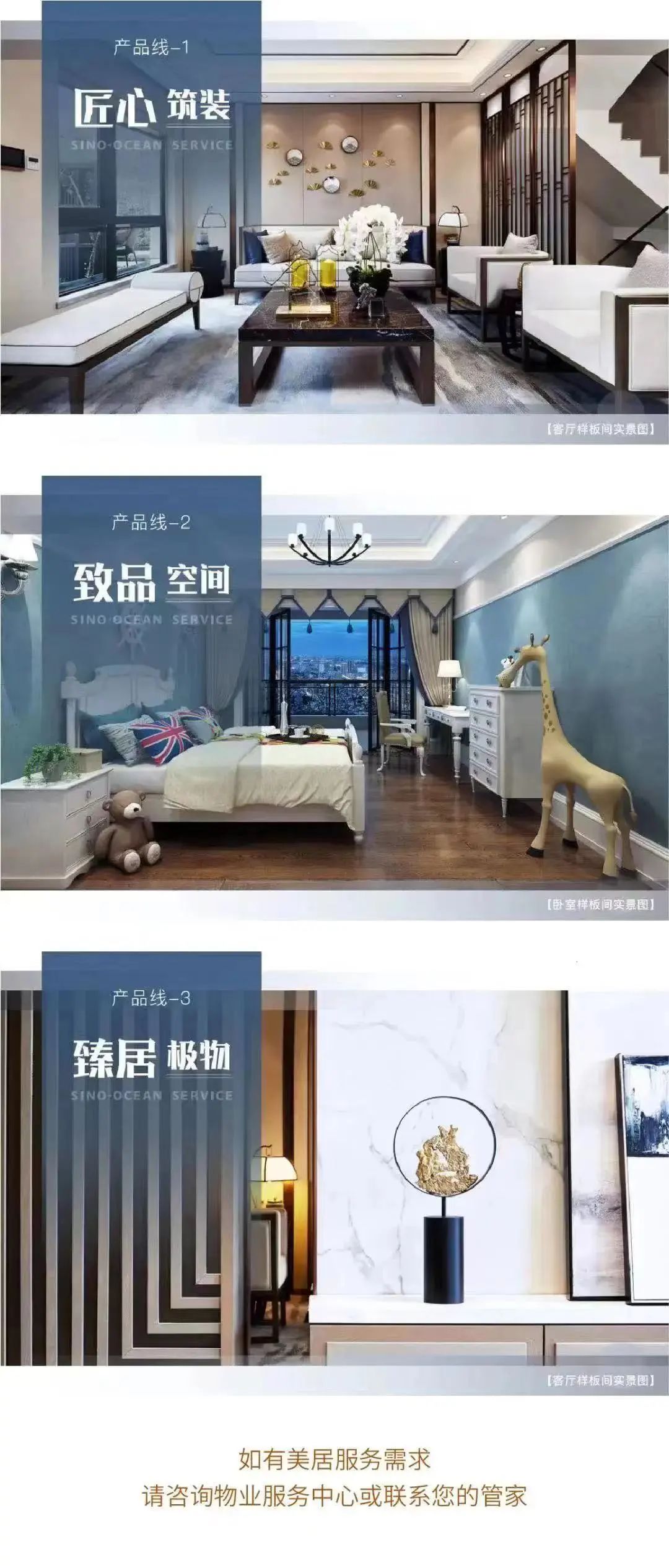 远洋服务美居打造全生态、高品质家居服务链条,围绕“匠心筑装、致品空间、臻居极物”三大产品线,不断深化服务内容,将好质量、好省心、好快捷的服务体验贯穿各个环节,为客户提供房屋翻新、局部改造、适老化改造等一站式个性化家居解决方案,满足生活需求,改善生活品质。