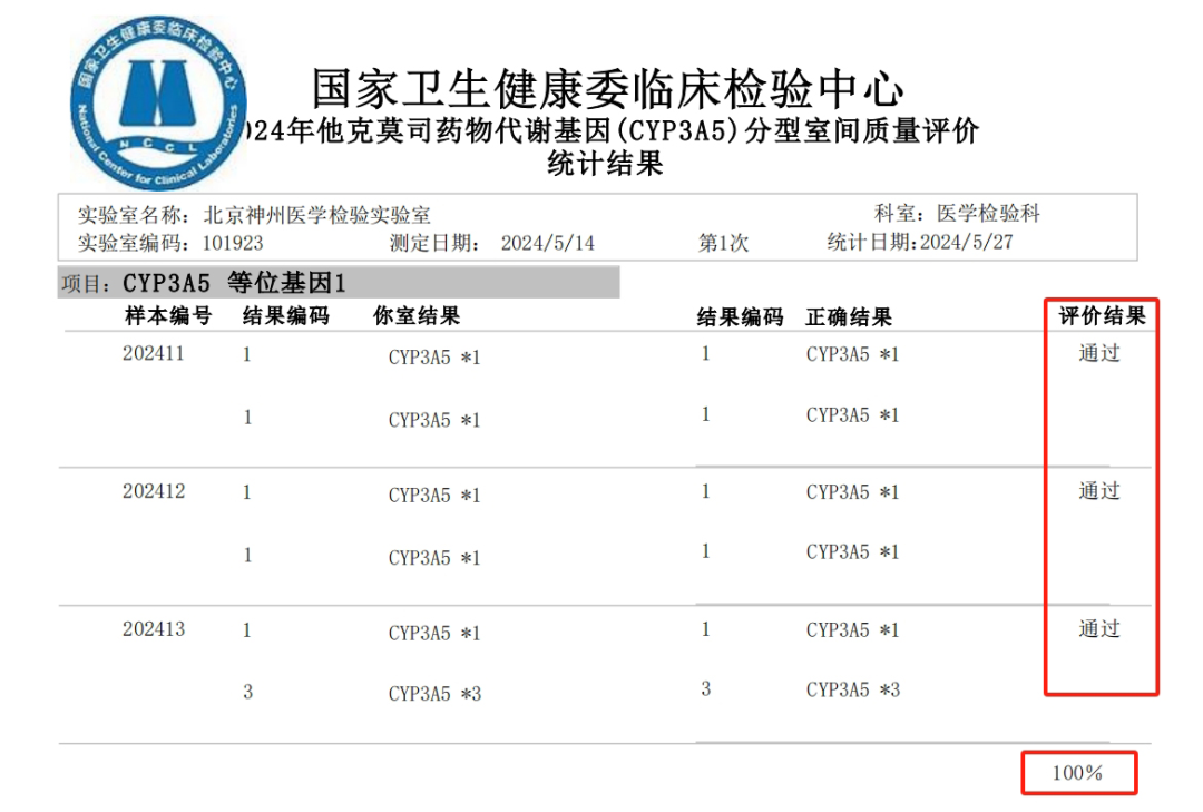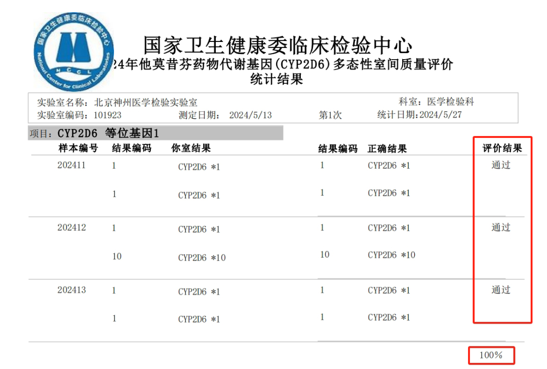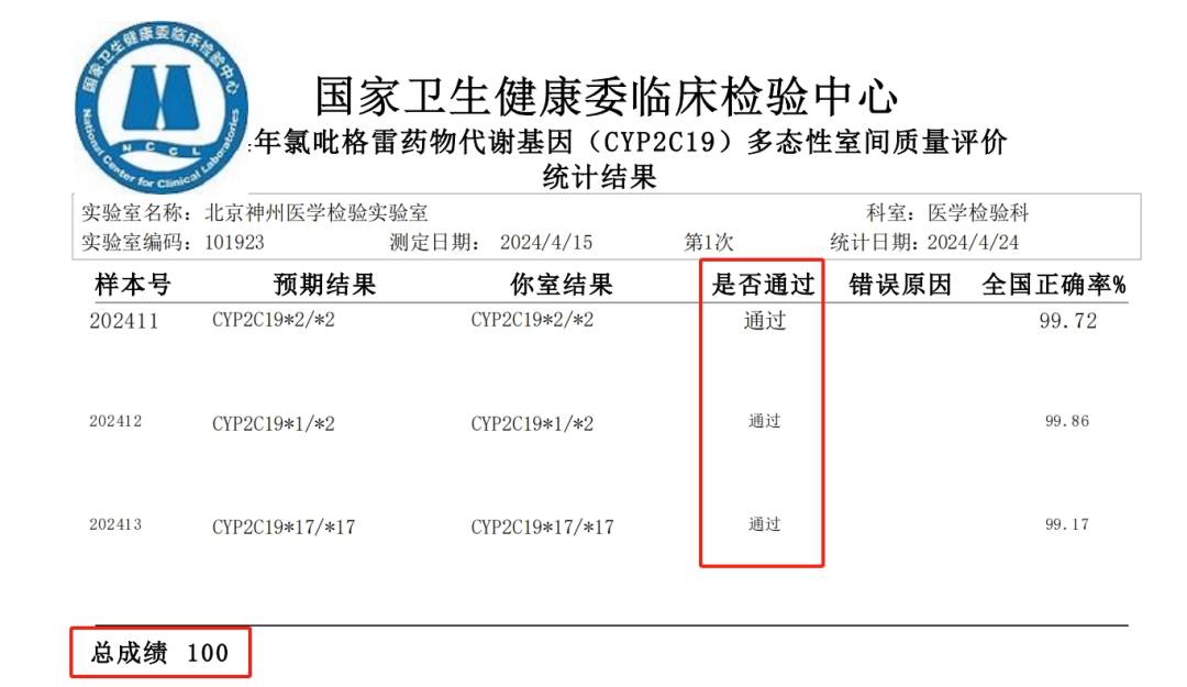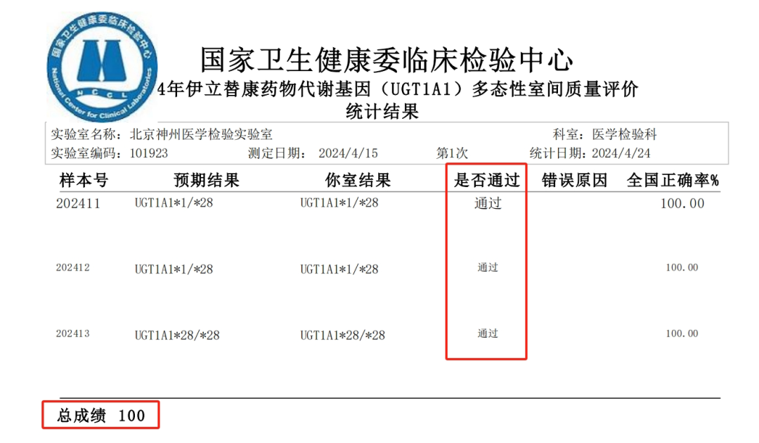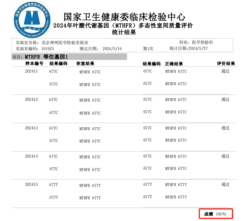 国家卫生健康委临床检验中心(NCCL)是国内最具权威的室间质评检测机构,通过定期组织开展室间质量评价活动,对实验室的检测能力进行考核、监督和确认,以保障医疗卫生工作的有效进行。作为业内领先的肿瘤精准医疗服务公司,神州医疗始终致力于搭建远高于行业标准的企业质控体系。