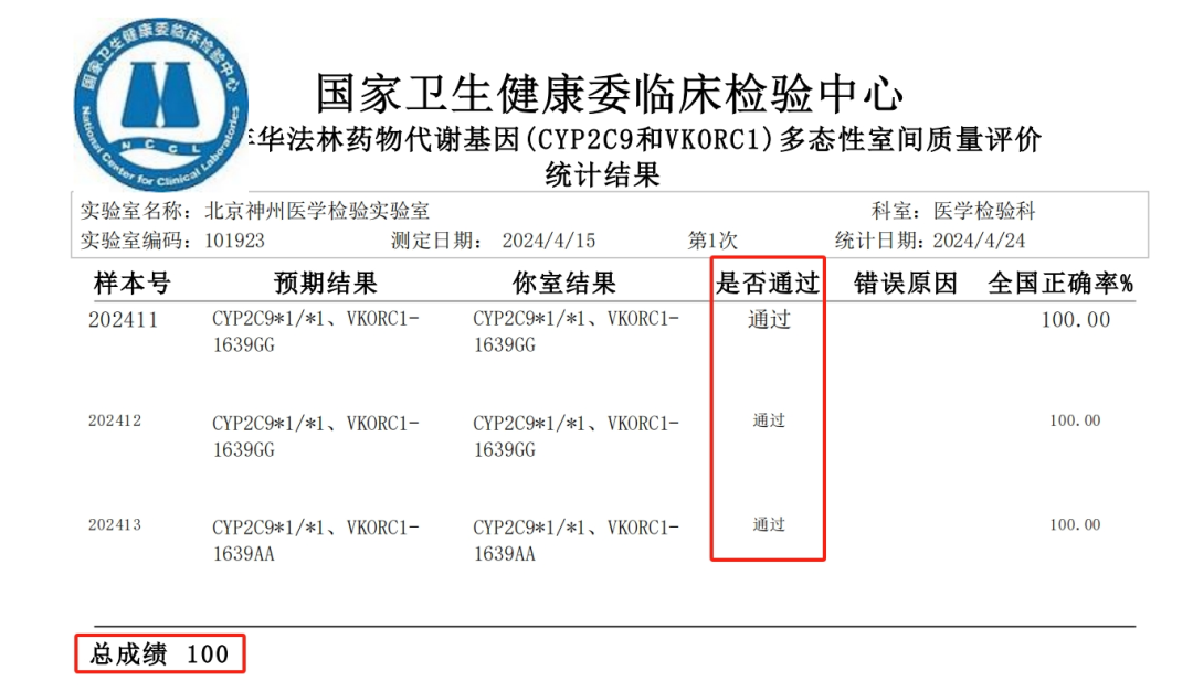 日前,国家卫生健康委临床检验中心(NCCL)对外公布了2024年全国临床检验室间质量评价的多项成绩,神州医疗旗下医学检验实验室以满分的成绩通过氯吡格雷、华法林、伊立替康、辛伐他汀、他克莫司、叶酸、他莫昔芬共7项室间质量评价,优异成绩的取得充分展现了神州医疗医学检验实验室在检测精准性和质量管理体系方面的卓越实力。