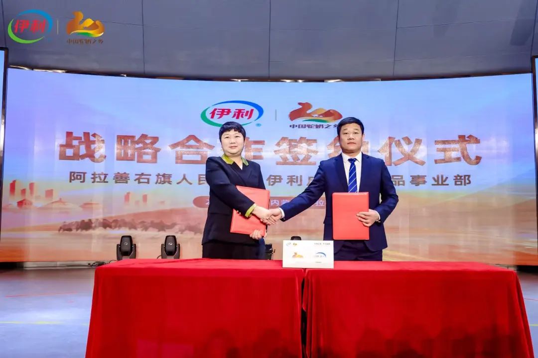 此次伊利集团成人营养品事业部与阿拉善右旗人民政府的战略合作,将传统与现代融合、资源与产业贯通。依托阿拉善右旗的沙漠驼乳奶源地和优良畜驼资源,和亚洲第一乳企伊利全球领先的全产业链能力与营养研发体系,共同推动内蒙古驼奶粉实现从地域特产向国家名片转化,打造现代驼乳产业新标杆,赋能中国特色功能乳品的价值重构。