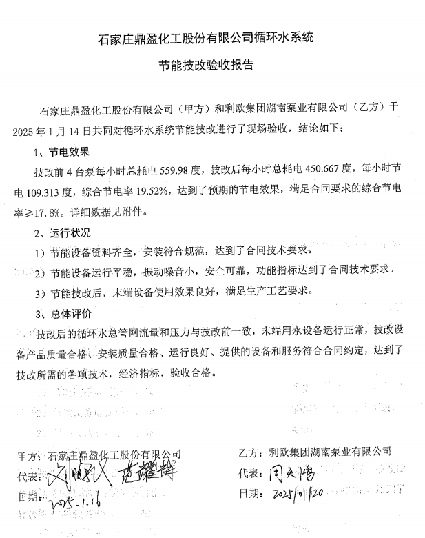 石家庄鼎盈化工循环水泵提质降耗节能技改项目
