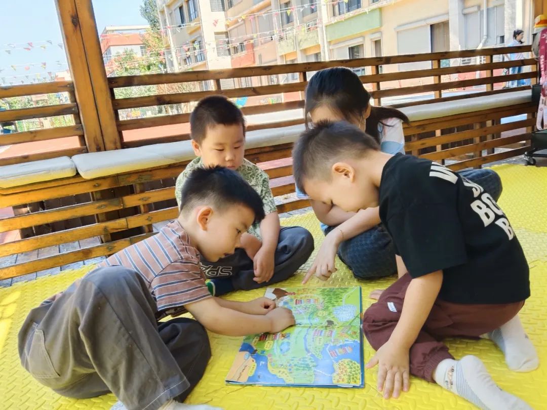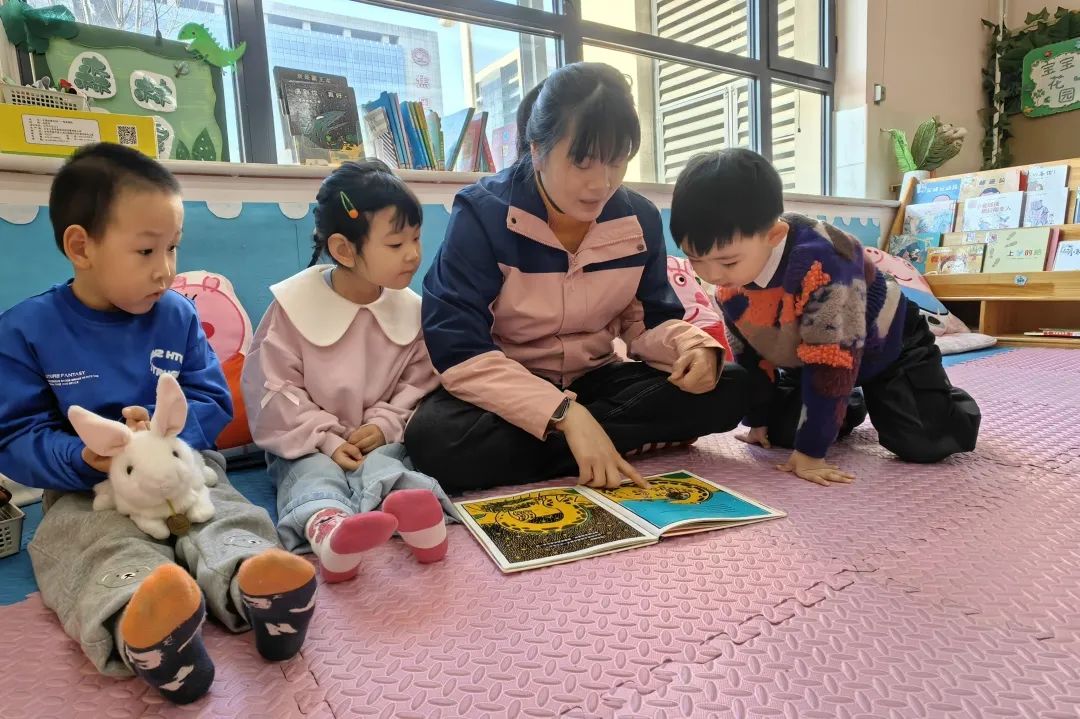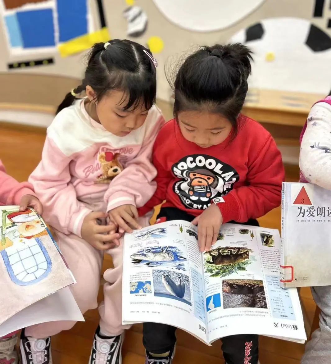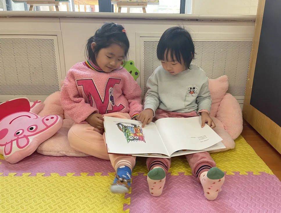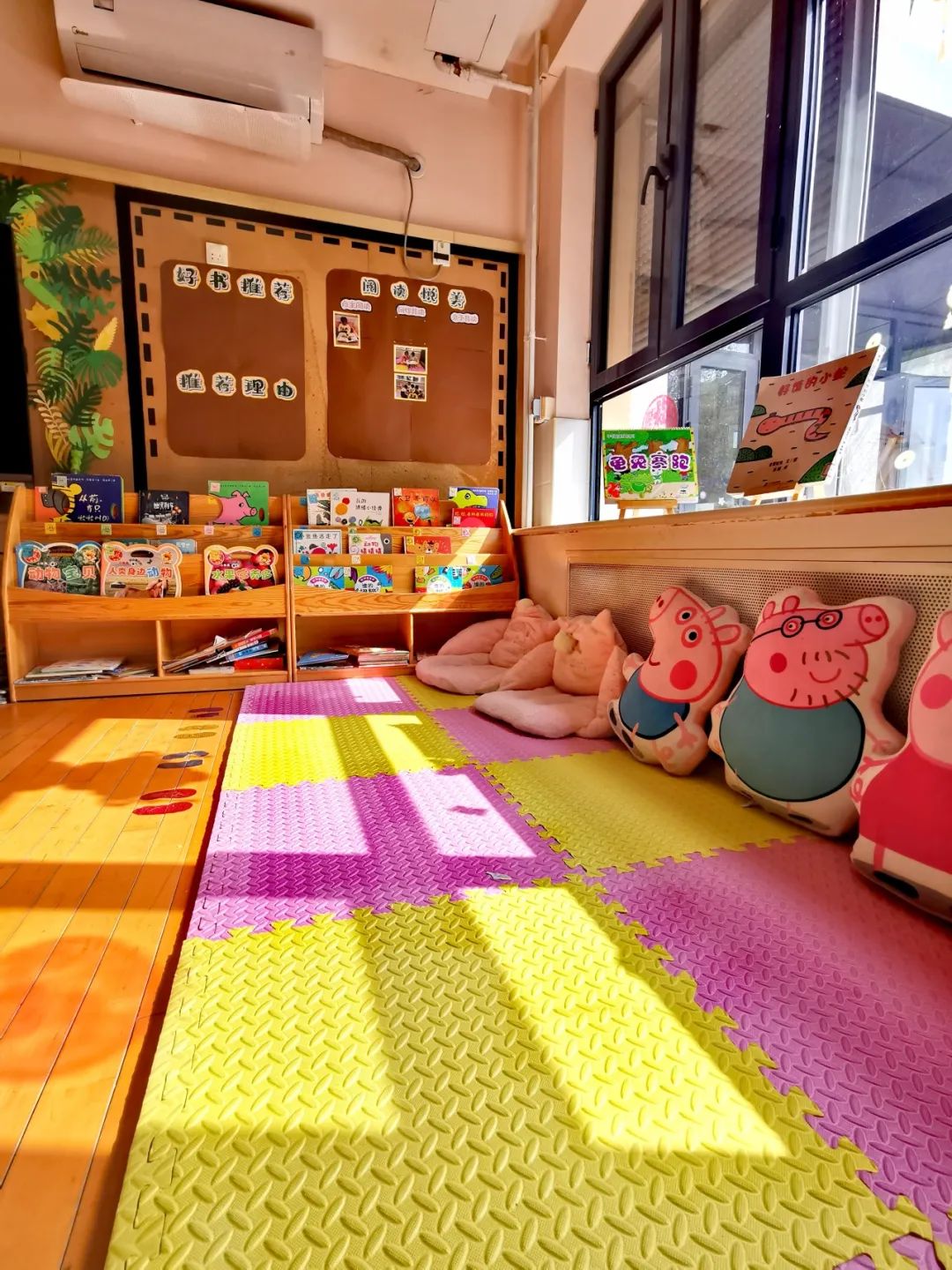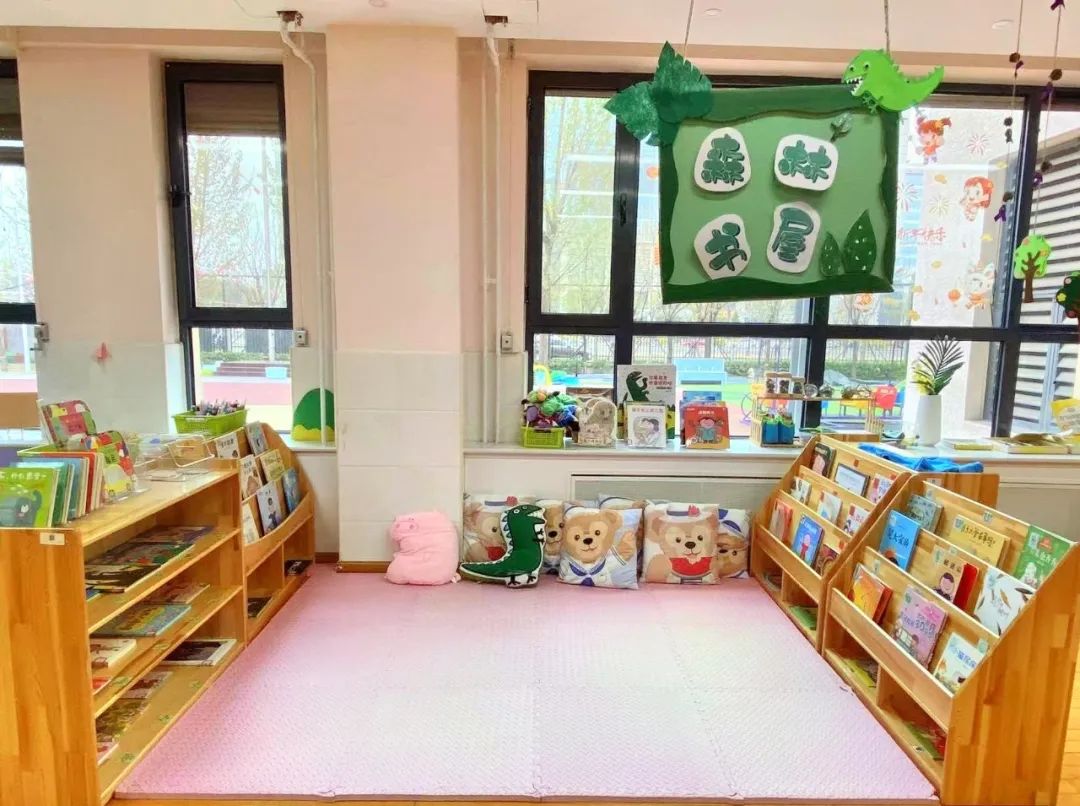 在这里,有乐趣无穷的图书、温馨舒适的阅读环境、热爱阅读的小伙伴,更有一起读书的老师们。孩子们可以自主选择自己喜欢的图书,或一个人静静阅读,沉浸在有趣的故事中,或与小伙伴围坐在一起,你一句我一句地扮演着书中的角色;还可以拿着书本,找到老师,像依偎在妈妈一样,聆听老师讲述书中美妙的故事。在这里,每一本书都宛如一扇神奇的窗户,孩子们踮起脚尖,便能透过它,望见广阔无垠的星辰大海,开启奇妙的知识之旅。